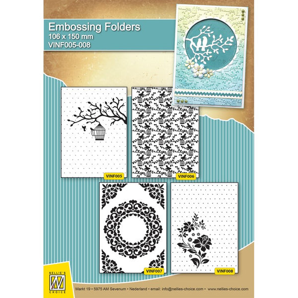 NELLIE SNELLEN   By  VINTASIA  - a4 Embossing Folder.  BIRDS 7 CAGES - TINY BACKGROUND